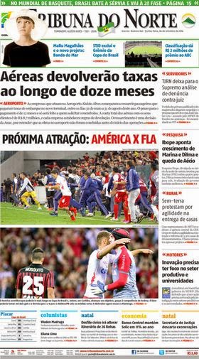 Página inicial Tribuna do Norte - o melhor jornal para o melhor leitor. byBrejinho News •setembro 04, 2014 0 Tribuna do Norte Edição de 04/09/2014 clique e leia o Melhor Jornal. Agreste Sat - 3283-2198 - 9433-2297 Facebook Twitter